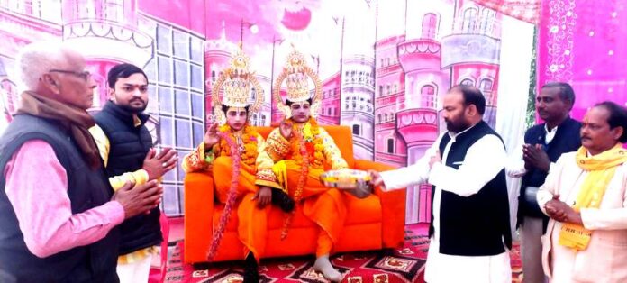 रामसनेहीघाट, बाराबंकी- तहसील रामसनेहीघाट अंतर्गत इटहुवा में रानी फूल कुवाँरि के स्थान पर प्रत्येक वर्ष की भांति इस वर्ष भी एक दिवसीय धनुष यज्ञ श्रीराम विवाह मेले का भव्य आयोजन हुआ। कार्यक्रम में पहुचे भाजपा नेता जवाहरलाल वर्मा व डीडीसी अभिषेक वर्मा ने भगवान श्रीराम की आरती कर कार्यक्रम का शुभारंम्भ किया। रविवार को आयोजित एक दिवसीय धनुष यज्ञ श्रीराम विवाह मेले में प्रभु राम व माता सीता विवाह सहित तमाम लीलाओं का मंचन हुआ। सीता स्वयंबर में परशुराम लक्ष्मण संवाद, रावण बाणासुर संवाद, श्री राम द्वारा शिव धनुष का खंडन एवं सीता-राम का विवाह आदि का मंचन देखकर श्रद्धालु दर्शक भाव विभोर हो गए। उन्होंने आदर्श रामलीला व नाटक मंडल ग्राम टडिया महुलारा के, कलाकारों द्वारा किये गए मंचन की जमकर प्रशंसा की। कार्यक्रम के मुख्य अतिथि भाजपा नेता जवाहरलाल वर्मा, जिला पंचायत सदस्य अभिषेक वर्मा नयन के साथ साथ आयोजक डॉ आदर्श वर्मा, कल्लू वर्मा, विमल तिवारी, कथा व्यास पंडित दुर्गेश तिवारी, कपिल तिवारी, सतीश कुमार सहित तमाम लोग उपस्थित रहे।
