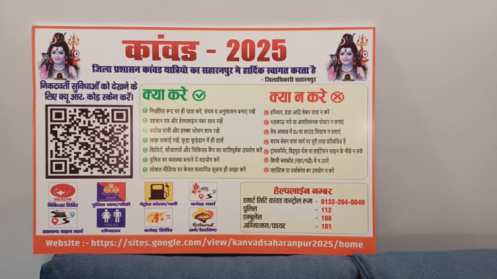 सहारनपुर कांवड यात्रा 2025 को सकुशल एवं सुविधाजनक सम्पन्न कराने हेतु मण्डलायुक्त अटल कुमार राय ने जिलाधिकारी मनीष बंसल की उपस्थिति में कांवड यात्रियों की सुविधा के लिए क्यूआर कोड का लोकार्पण किया। मण्डलायुक्त अटल कुमार राय ने बताया कि जिलाधिकारी सहारनपुर एवं इनकी टीम द्वारा विकसित किया गया क्यूआर कोड कांवड़ यात्रियों की सुविधा के दृष्टिगत बहुत की सराहनीय कार्य है।