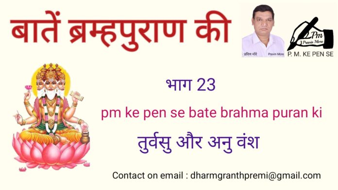 भाग 23 pm ke pen se bate brahma puran ki तुर्वसु और अनु वंश