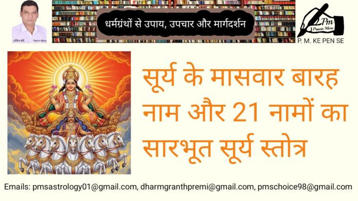 सूर्य के मासवार बारह नाम और 21 नामों का सारभूत सूर्य स्तोत्र